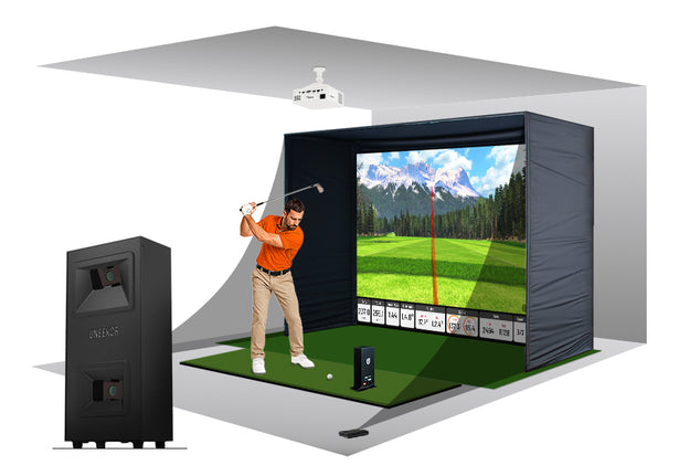 Uneekor EYE MINI LITE All-In-One Golf Simulator delivers a complete indoor training environment featuring Uneekor's camera-based EYE MINI LITE launch monitor. Designed specifically for indoor simulator setups, this unit provides high-precision ball and club data without relying on specialty golf balls. Its dual high-speed infrared camera system captures every swing with consistent accuracy, making it ideal for golfers who want reliable feedback. Paired with a premium enclosure, turf, and projector, this package creates a realistic, data-driven training space for year-round improvement and access to top-tier virtual golf software.